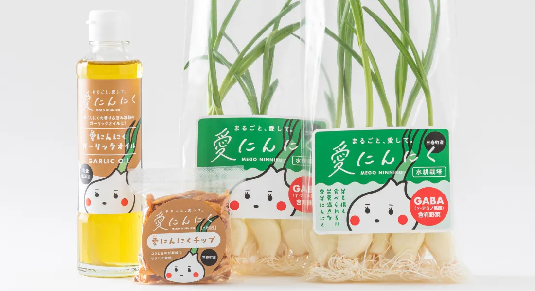 要田ソーシャルワークセンターアグリットで栽培・販売している「愛(めご)にんにく」。
